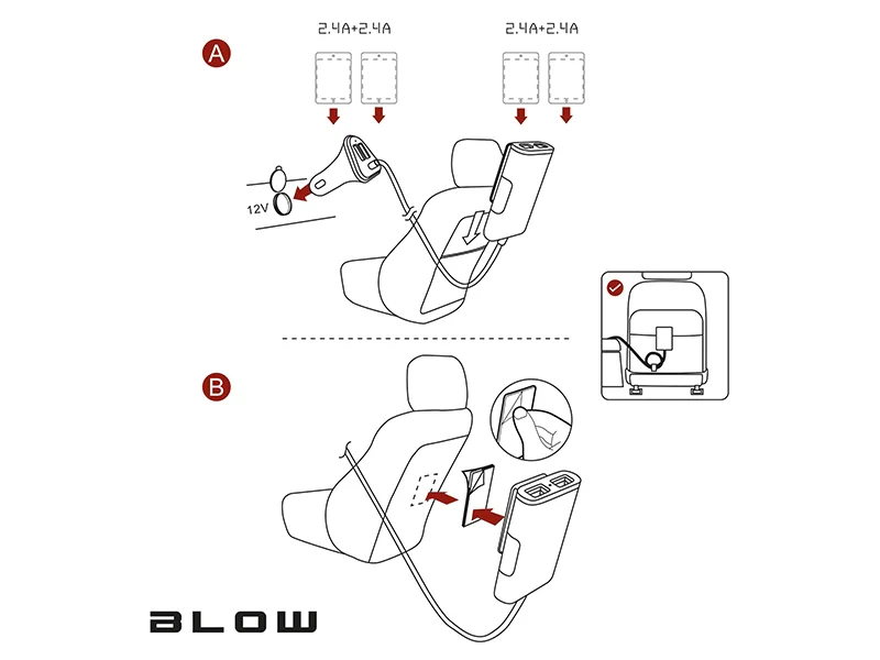 4-port USB autolader – 9,6A – Quick Charge iQchip – BLOW