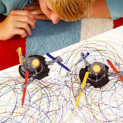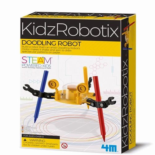 Bouw een creatieve robot met deze futuristische bouwset ‘Doodling Robot’ uit de serie Kidzrobotix van het merk 4M! Eenmaal in elkaar gezet zal deze artistieke robot gaan trillen en roteren en daarbij spectaculaire patronen op papier zetten. Techniek blijft verbazen!