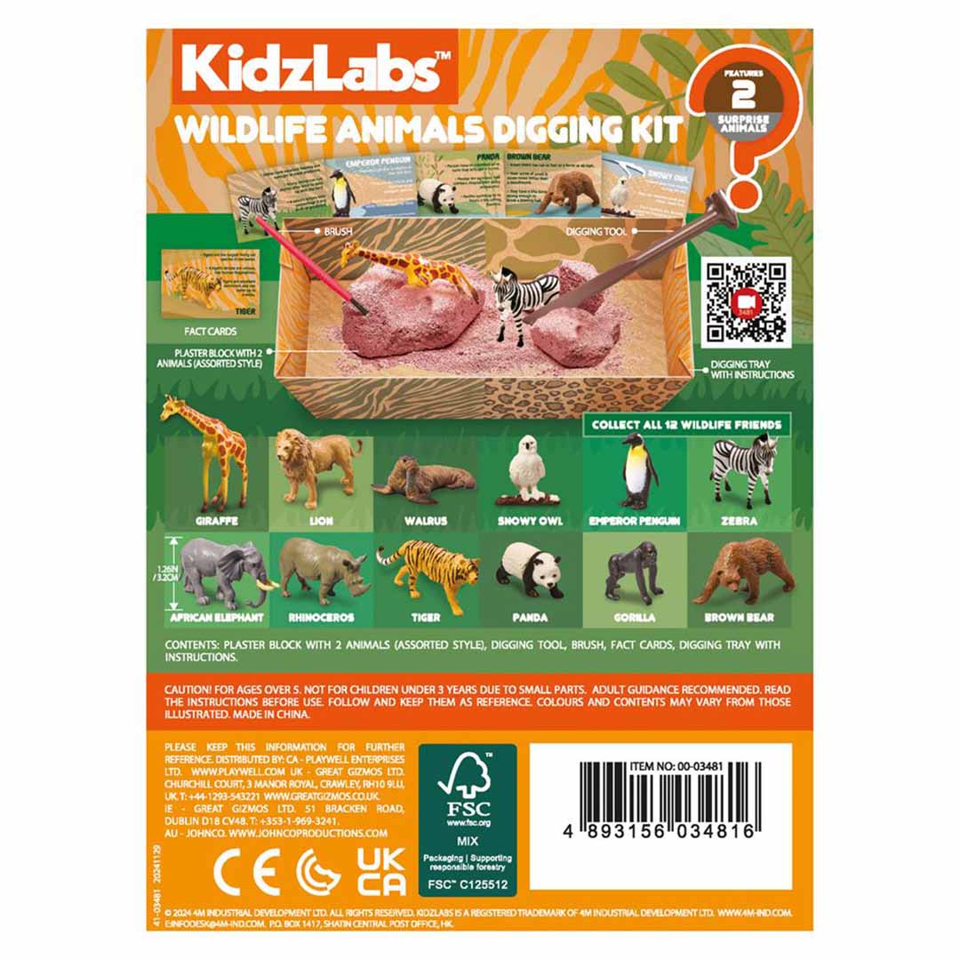 Met de opgraafkit ‘Wildlife Animal Digging Kit’ uit de Kidzlabs collectie van het merk 4M duik je in een echt archeologisch opgravingsavontuur. In dit educatieve speelgoed wachten 2 verrassingsdieren die stukje bij beetje tevoorschijn komen, alsof je zelf op expeditie bent.