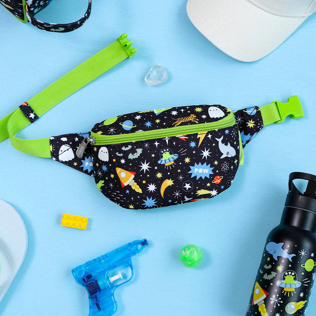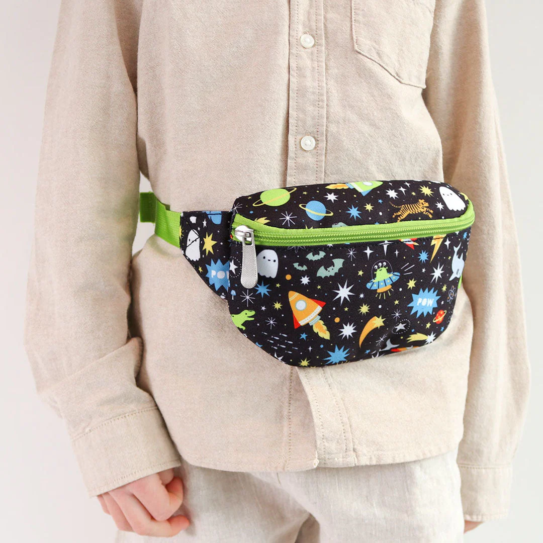 Neem schatten, snoepjes of je favoriete speelgoedgadgets mee in deze heuptas ‘Bum Bag – Galaxy’ van het Nederlandse merk A Little Lovely Company.