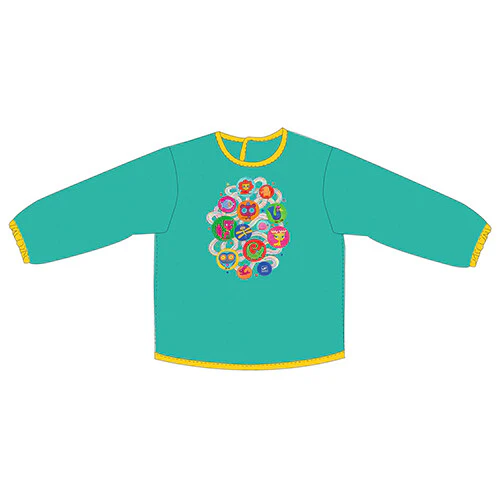 Een waterafstotend, groen kinderschort ‘Apron Muriel’ met een kleurrijke afbeelding op de voorkant van het Franse merk Djeco. Ideaal voor de kleintjes om in te kokkerellen, kliederen en te knutselen. Een must-have accessoire voor de kleine creatievelingen!