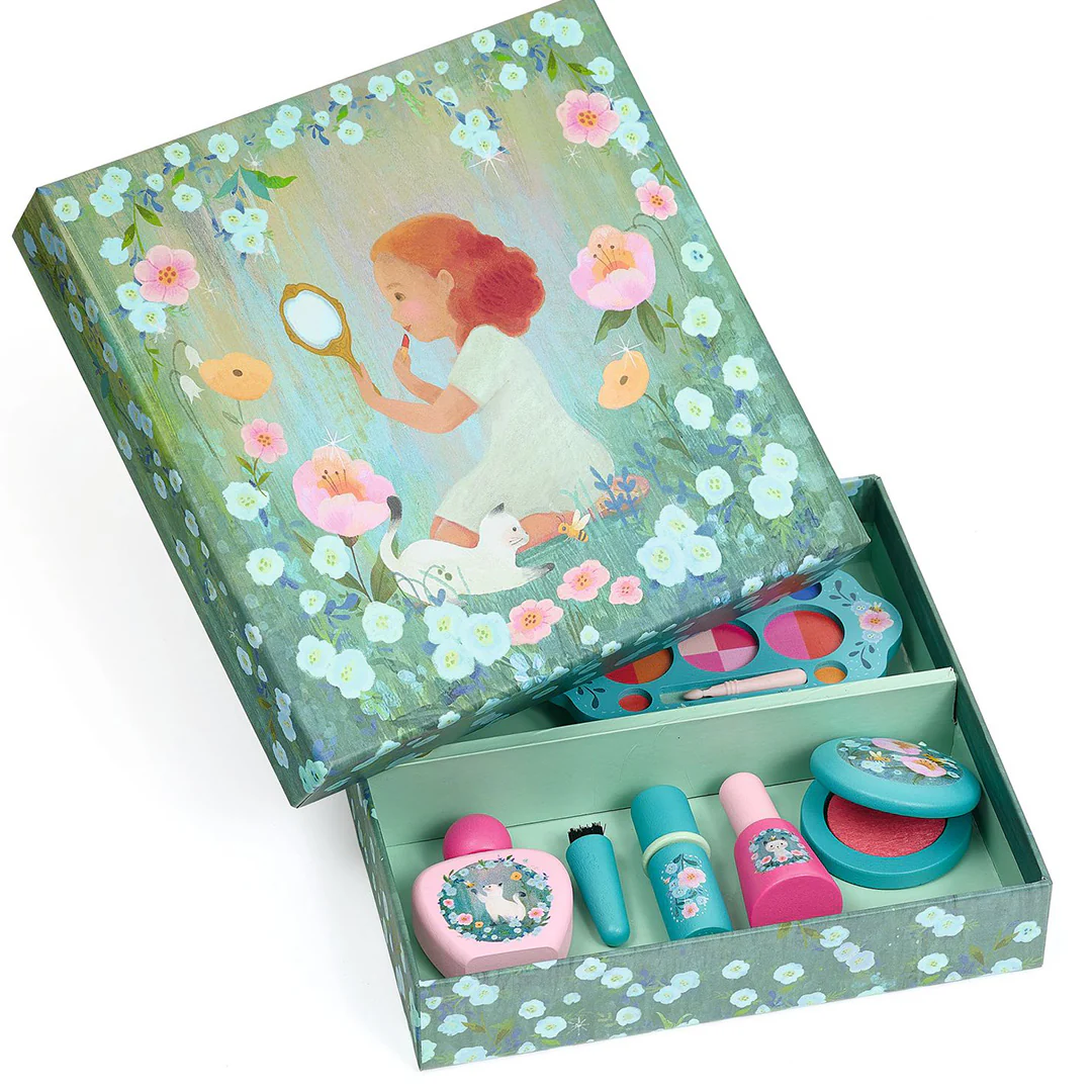 Deze prachtige, gedecoreerde make-upset stimuleert kinderen om te doen alsof, te ontdekken en hun eigen verhalen te verzinnen. De realistische accessoires voelen fijn aan en zijn helemaal kindveilig. Alles heeft een eigen plekje in de mooie opbergdoos, waardoor opruimen na het spelen net zo leuk en makkelijk wordt.