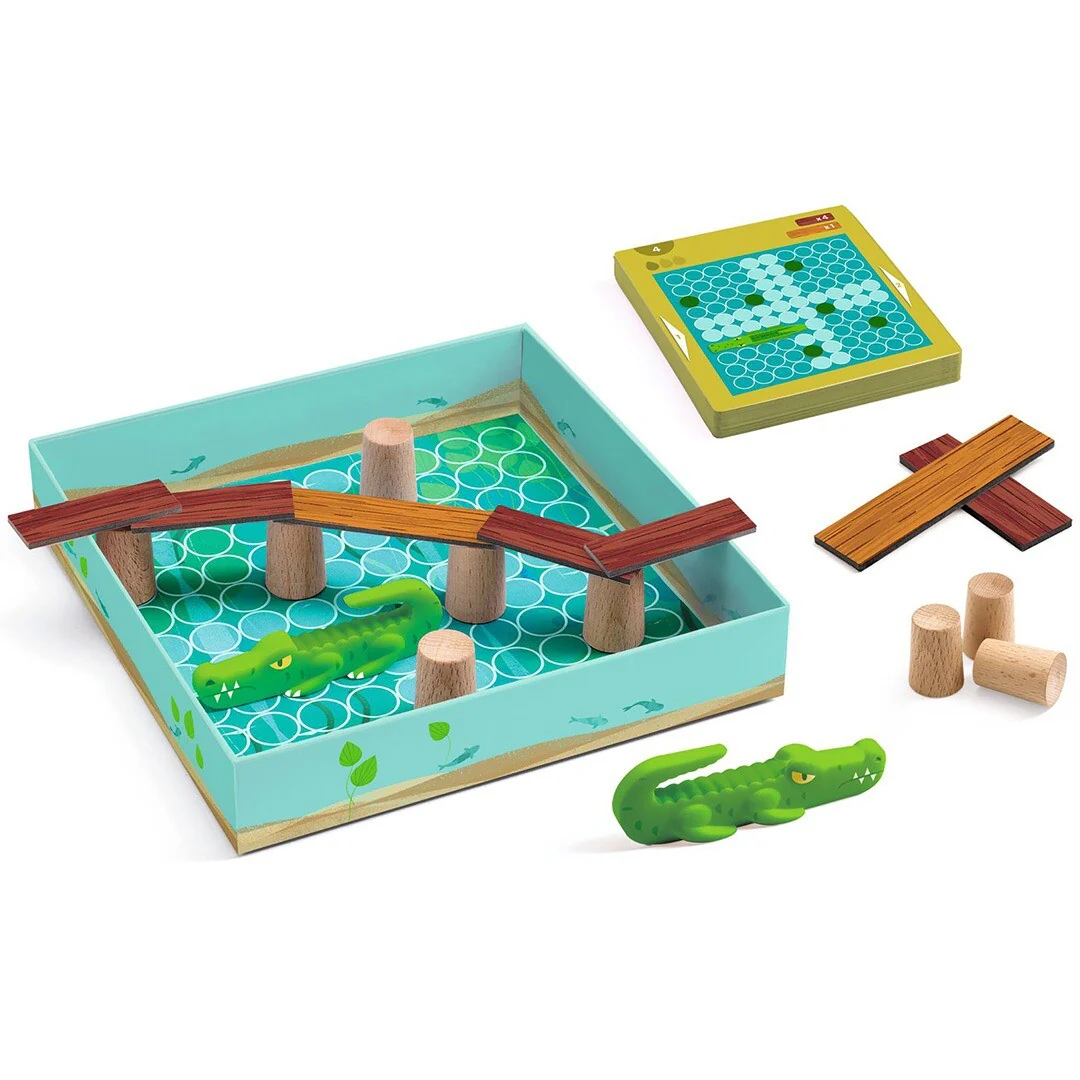 De uitdagingskaarten geven aan op welke plekken de boomstammen en hongerige krokodillen geplaatst moeten worden. Daarna is het taak, door middel van de planken, een route te maken waarmee de overkant van de rivier bereikt kan worden, zonder de krokodillen in kwestie te kruisen. Een uitdagende opdracht met iedere keer maar één juiste oplossing. Oplossing gevonden of lukt het écht niet? Dan staan achterin het boekje alle oplossingen.