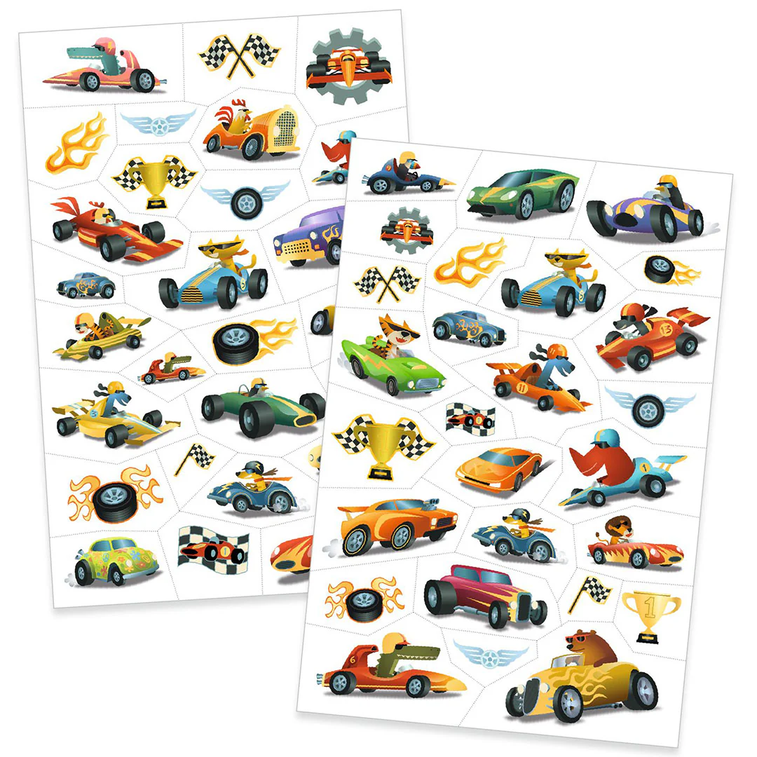 Deze tijdelijke kindertattoos ‘Bolides’ van het Franse merk Djeco nemen kinderen mee op een reis van raceauto’s. Met stoere, geïnspireerde symbolen toveren ze armen en benen om tot echte kunstwerkjes.