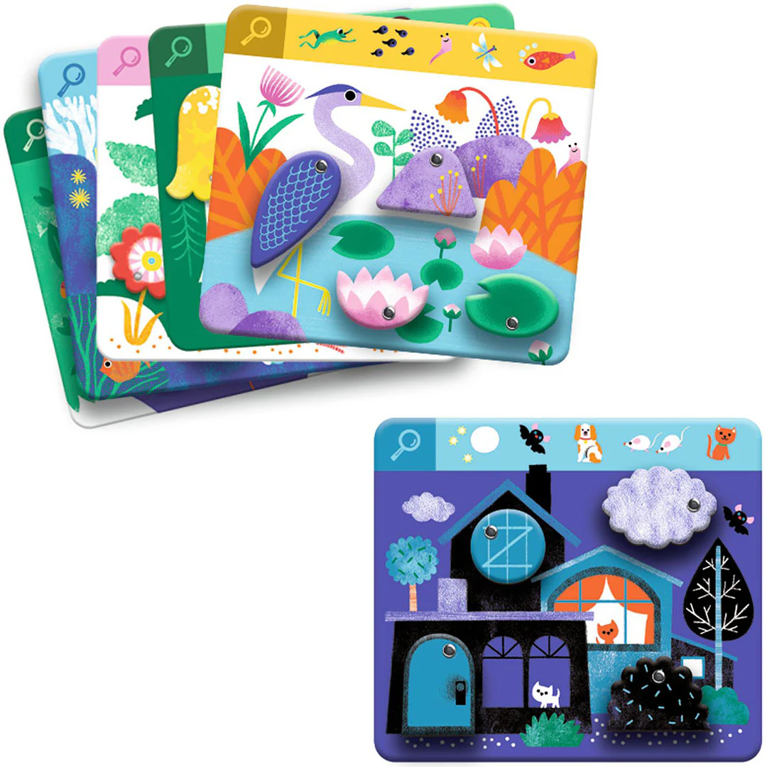 Kiekeboe! Met dit vrolijke zoekspel ‘Obs Animo’ van het Franse merk Djeco ontdekken kinderen spelenderwijs een wereld vol verrassingen. Achter ieder draaiende onderdeel schuilen grappige illustraties van diertjes, klaar om tevoorschijn te komen.