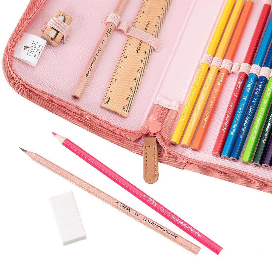 Of je nu thuis bent of op school, jouw tekenset is altijd bij de hand. Binnenin dit pennenetui met vlinderillustraties zorgen de potloden in regenboogkleuren voor tekenplezier. Elk item heeft zijn eigen elastische lus, zodat alles netjes op z’n plek blijft.