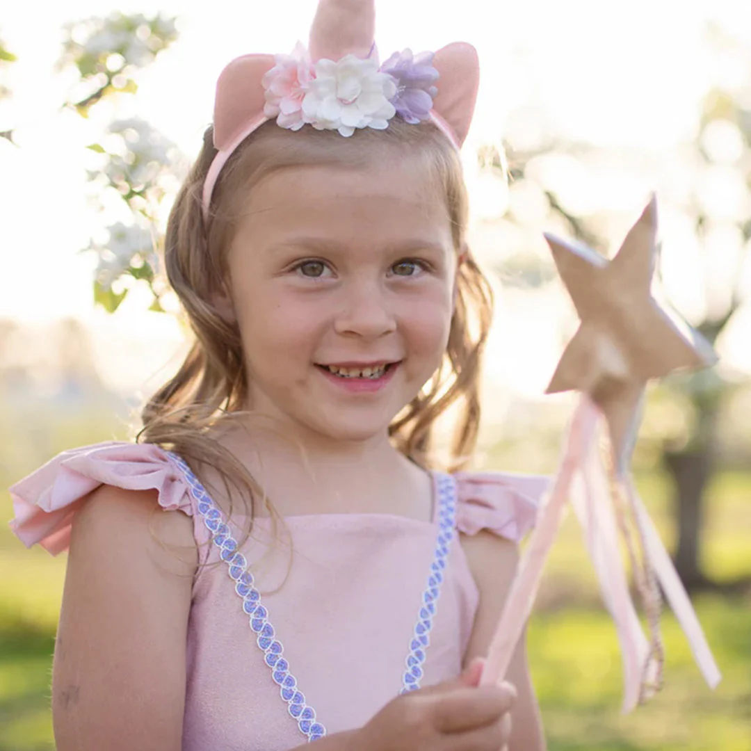 Maak dromen werkelijkheid met deze verkleedkleding set ‘Pink Shimmer Unicorn Dress & Headband’ van het Canadese merk Great Pretenders. Fantasierijk speelgoed voor kinderen met een hart vol dromen.