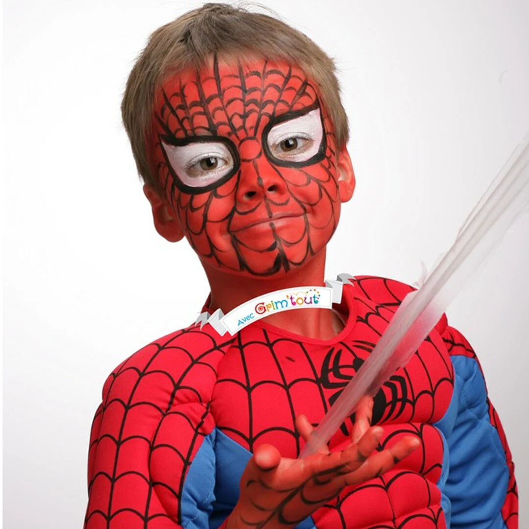 Het schminksetje bestaat uit 4 kleuren: blauw, rood, zwart en wit. Gebruik het bijgevoegde sponsje om de achtergrond te kleuren en met het penseeltje maak je de details. Zo verander je binnen een handomdraai in jouw favoriete superheld!