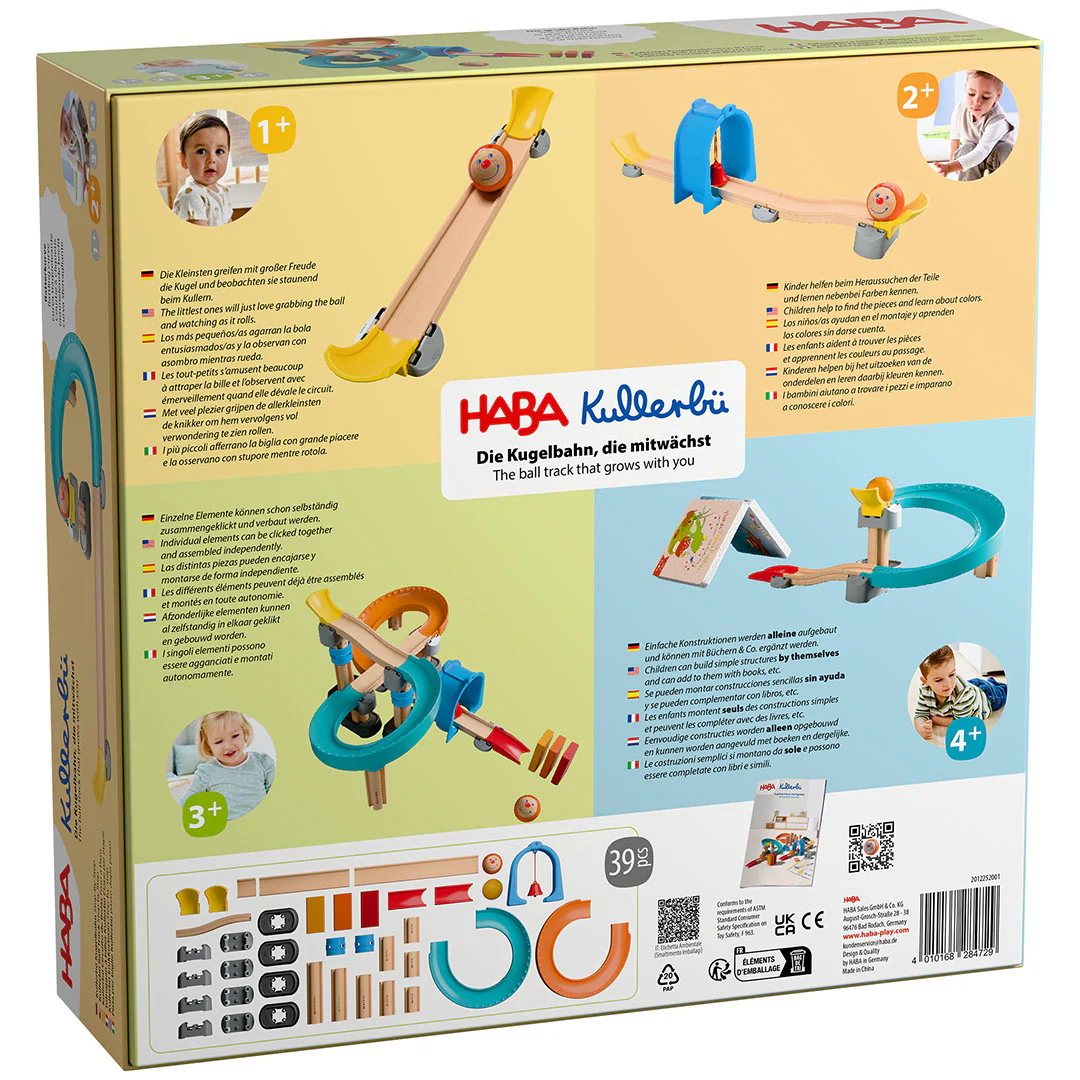 De knikkerbaan ‘Kullerbü Kugelbahn Step-by-Step’ van het Duitse merk HABA groeit mee met elke nieuwe ontdekking. Dit speelgoed maakt het makkelijk om te bouwen, te kijken en steeds een stap verder te gaan. Van een eenvoudige start tot uitgebreidere banen met bochten, poorten en hoogteverschillen.