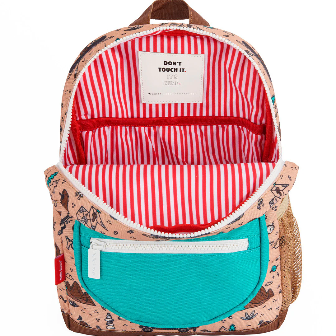De kinderrugtas is ruim genoeg voor een lunchbox, een drinkbeker en een setje kleding. Ook schriften en mappen op A4-formaat en handwerkjes kunnen er in mee naar huis.