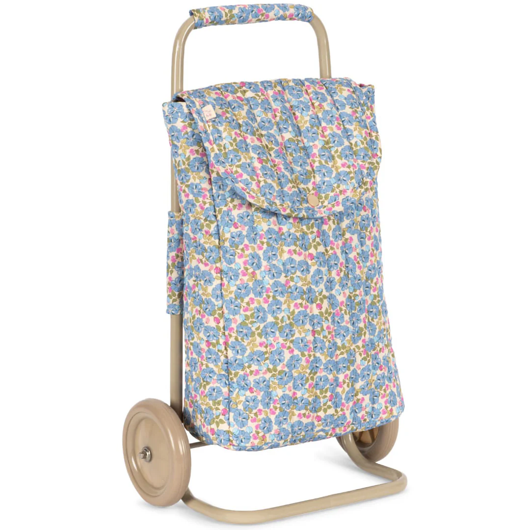 Met deze boodschappentrolley op kinderformaat ‘Kids Trolley – Fleur Rosier’ van het Deense merk Konges Sløjd kunnen kleine shoppers op hun gemak inkopen doen. Tripje naar de supermarkt, groenteboer of bakker, dit kleurrijke karretje voegt vreugde toe aan iedere “boodschap”!