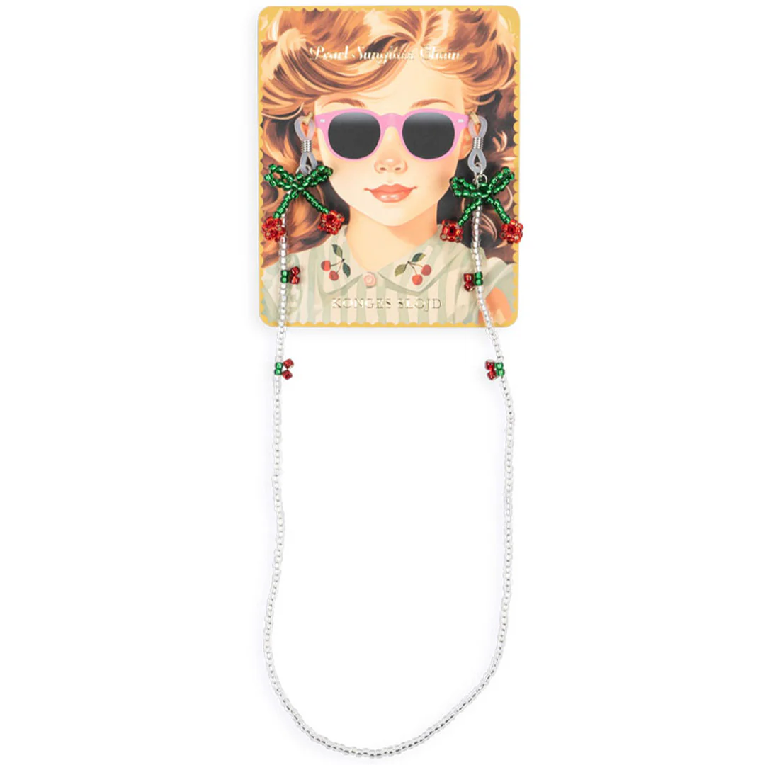De zonnebrilketting ‘Sunglasses Bead Chain Cherry’ van het Deense merk Konges Sløjd geeft een speels accent aan een kinderzonnebril en houdt ’m dichtbij tijdens zonnige dagen. De kraaltjes vormen samen het herkenbare kersendessin van het merk, waardoor dit accessoire net zo leuk oogt als het praktisch is.