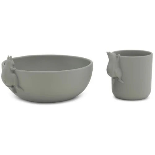 De drinkbeker en kom zijn flexibel maar toch ook stevig, zodat peuters in alle rust kunnen oefenen met zelfstandig drinken en eten. Konijnen in relïef voelen daarnaast verrassend aan.
