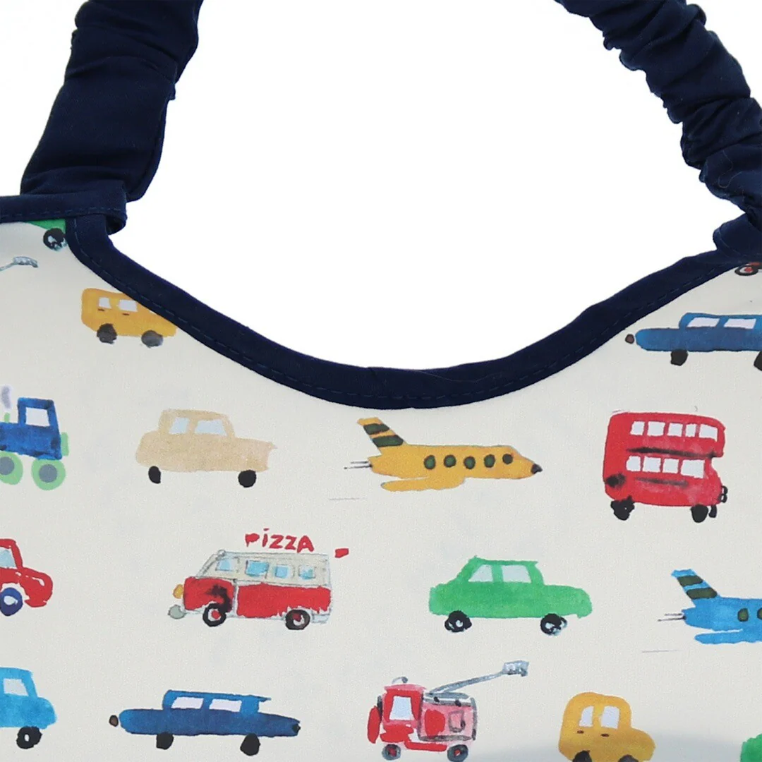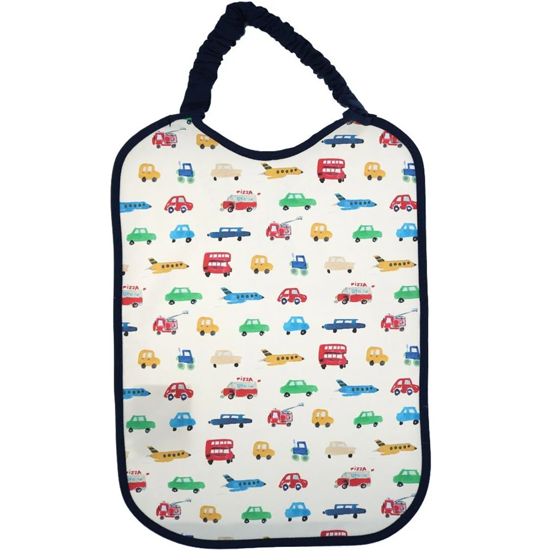 Het slabbetje met voertuigendessin houdt de kleding eronder schoon van geknoei of gemors. Daarbij is de slab extra lang, zodat de kleine chauffeur, zonder zorgen over de kleding, kan smullen van zijn of haar favoriete maaltijd.