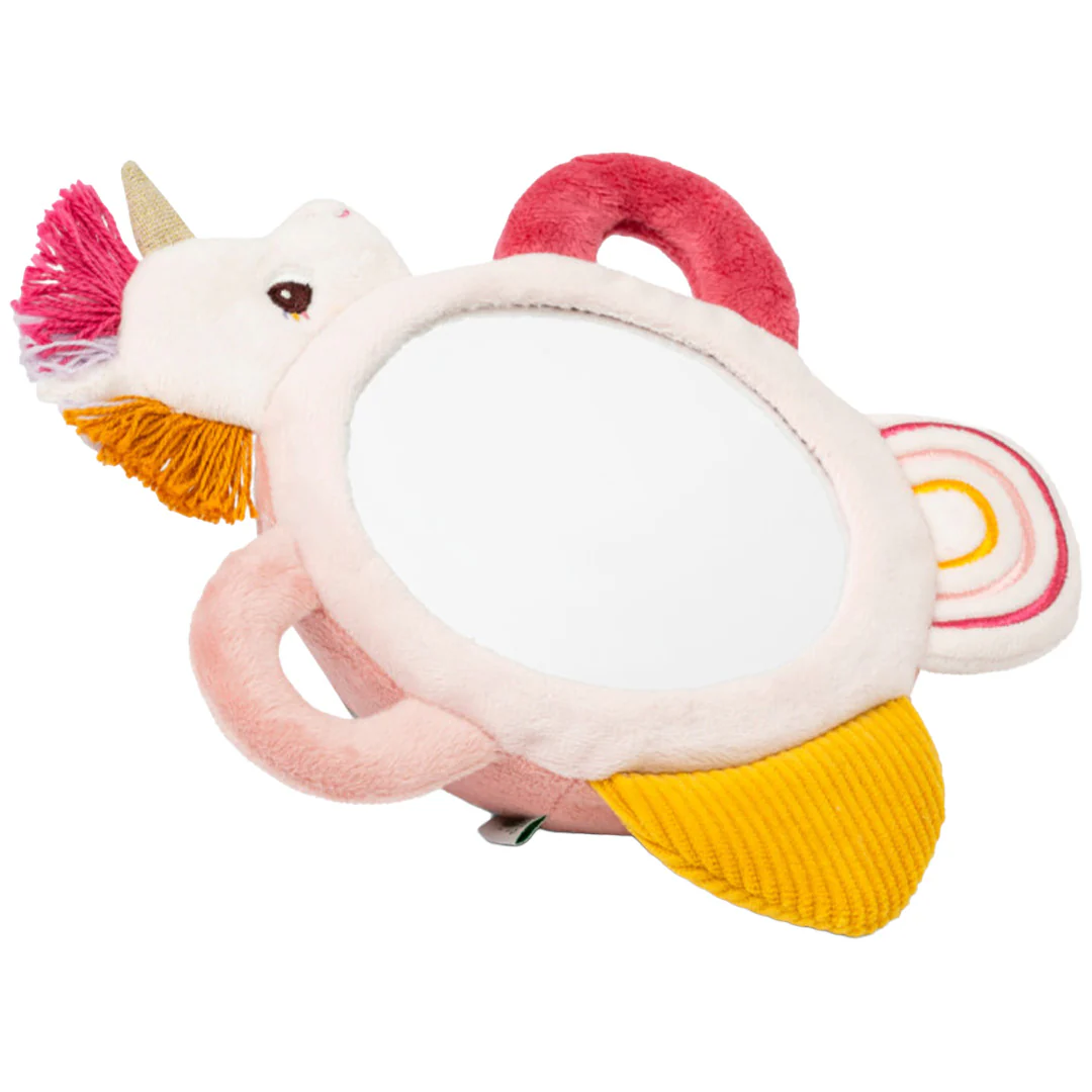 Wie zie je in de spiegel? Deze activiteitenknuffel ‘Ontdekkingsspiegel Lena de Eenhoorn’ van het Belgische merk Lilliputiens helpt de baby met ontdekken! Terwijl dit knuffelspeelgoed ook nog eens heerlijk zacht is.