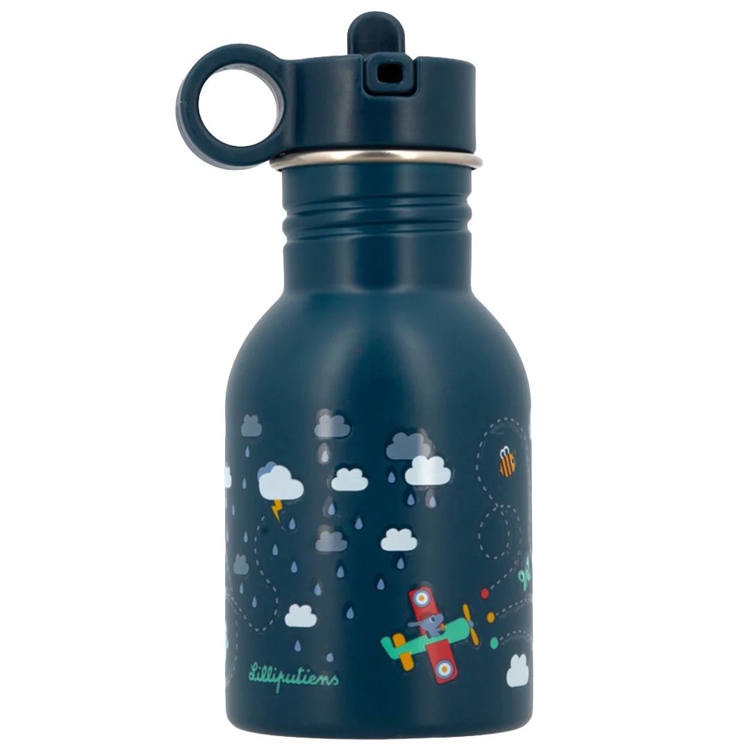 De donkerblauwe fles met speelse illustraties heeft een lekvrije drinkdop met pop-uprietje. Kinderen drinken er eenvoudig uit, zonder te morsen.