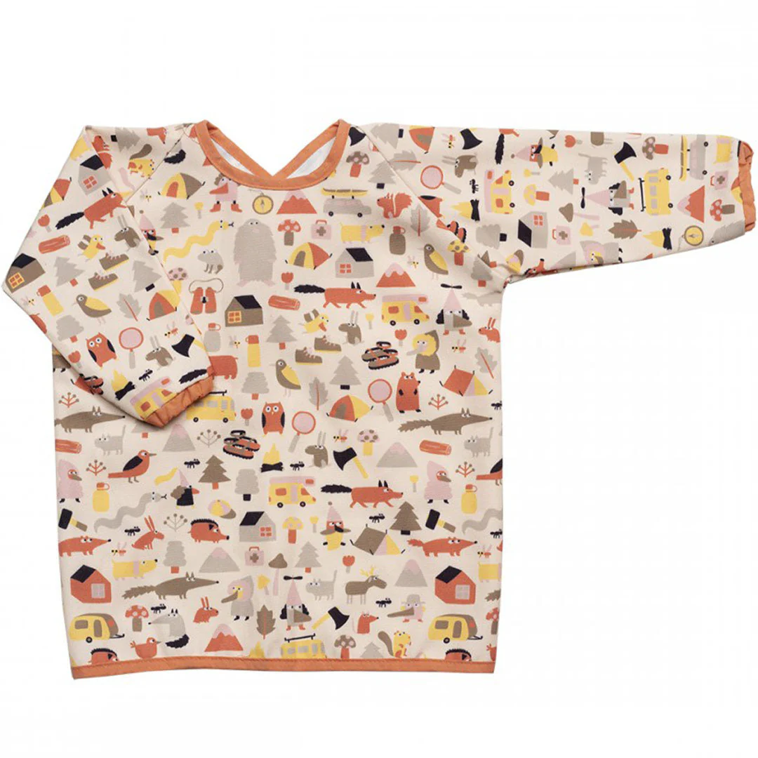 Het leuke bosdieren- en kampeerdessin maakt elke maaltijd of knutselmiddag een feestje. Door de lange mouwen hoef je niet bang te zijn dat kleding vies wordt!