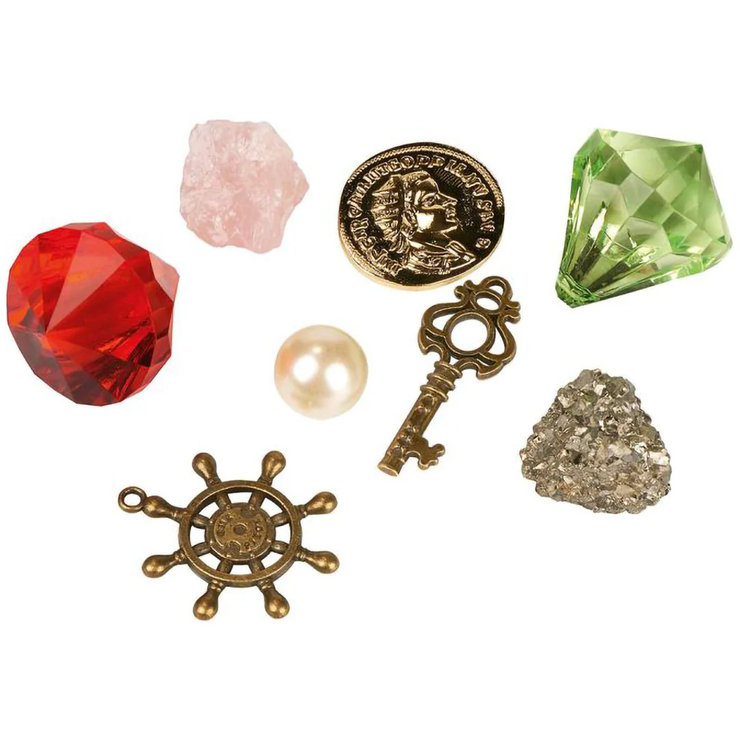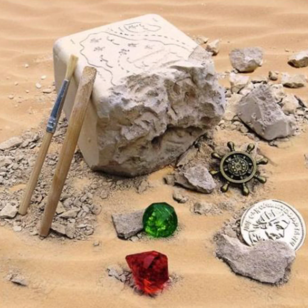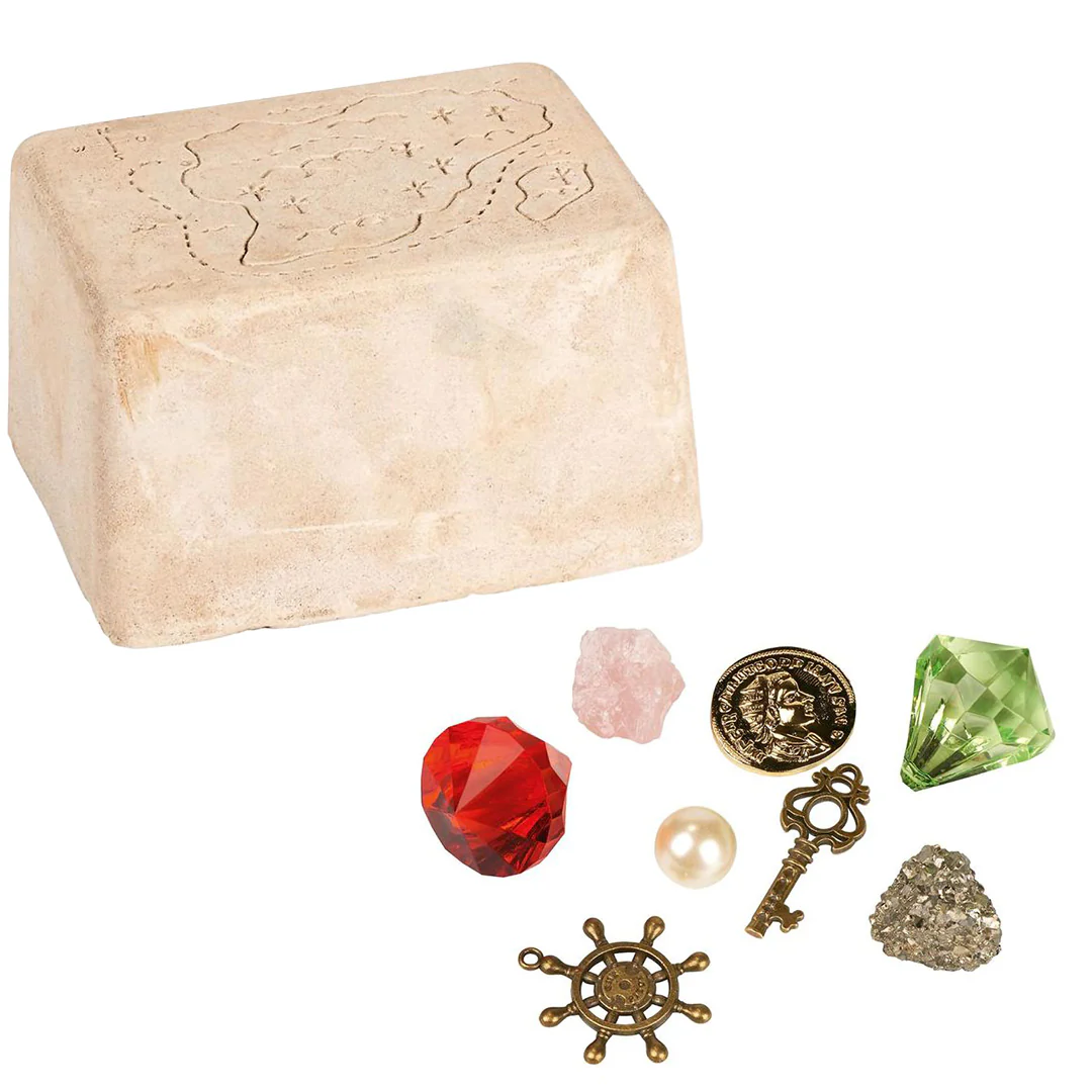Met de bijgeleverde beitel en kwast hakken kinderen de steen voorzichtig open en werken ze toe naar wat erin verstopt zit. Langzaam verschijnen er piratenschatten! Zo voelt elk knutselpakket als een kleine expeditie.