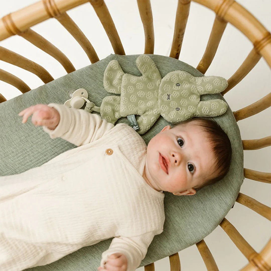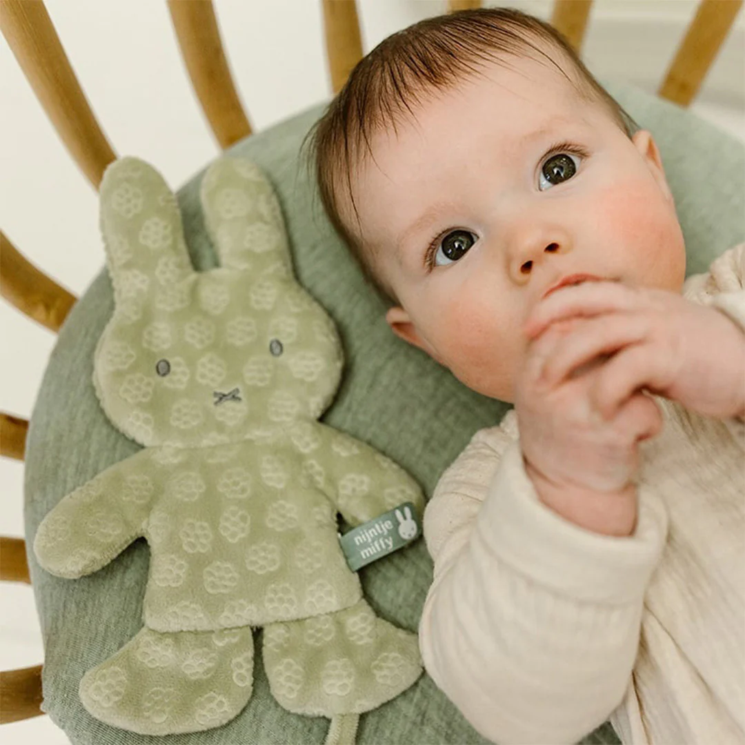 Zacht, vertrouwd en altijd binnen handbereik. Deze Nijntje speendoek ‘Green Flower’ van het Nederlandse merk Nijntje-Miffy combineert een lief knuffelvriendje met een handig hulpmiddel voor onderweg.