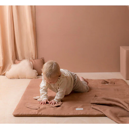 Creëer een eigen speelhoekje met dit gewatteerde, linnen speelkleed ‘Noisette’ uit de Lin Français collectie van het Spaanse merk Nobodinoz.