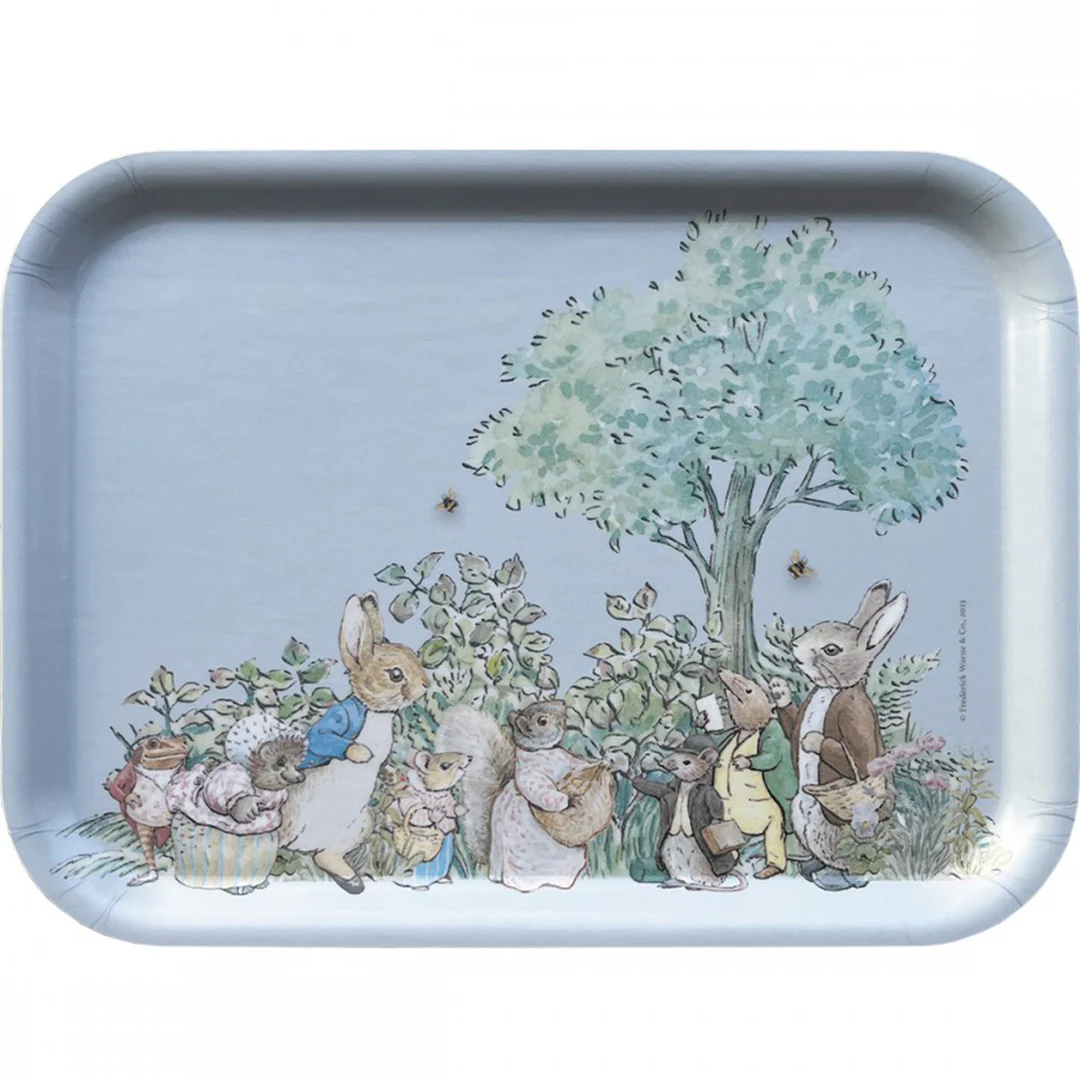 De houten serveertray met opdruk van de iconische Pieter Konijn maakt elke maaltijd of snack een feestje! Op de serveerschaal staat niet alleen Pieter Konijn, maar ook al zijn vriendjes en familie. Door de leuke opdruk voegt het dienblad een gezellig tintje toe aan tafel.