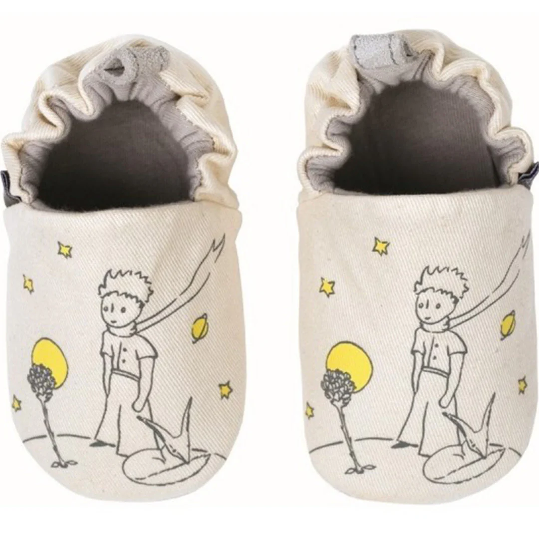 Deze babyschoentjes houden kleine voetjes heerlijk warm en comfortabel. Op de babyschoentjes prijkt De Kleine Prins met een slapend vosje aan zijn voeten. Door de elastieken enkelband blijven de schoentjes goed zitten zonder te knellen en de antislip zool maakt ze veilig voor de eerste stapjes.