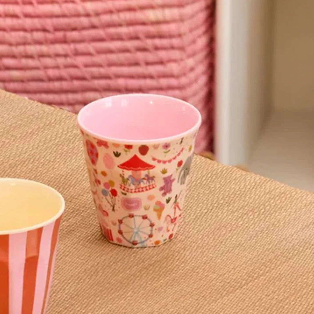 Met deze beker ‘Melamine Cup with Fun Fair Print – Small – Pink – 160 ml’ van het Deense merk Rice wordt zelfstandig drinken een vrolijk moment. De kinderbeker heeft een zachte roze kleur en een speels thema dat meteen aanspreekt bij kleine ontdekkers.