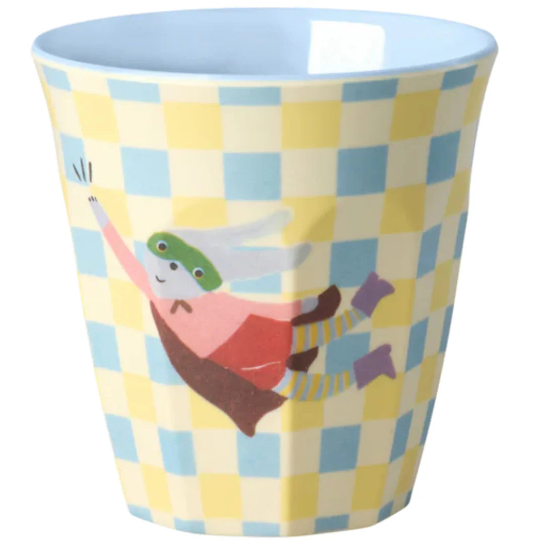 Deze set van 6 kinderbekers ‘Melamine Kids Cup with Hero Print – Green – Small – 6 Pack’ van het Deense merk Rice brengt meteen kleur en plezier op tafel. Elke beker heeft een eigen speelse illustratie met vrolijke figuurtjes en patronen, waardoor drinken elke keer weer een klein feestje wordt.