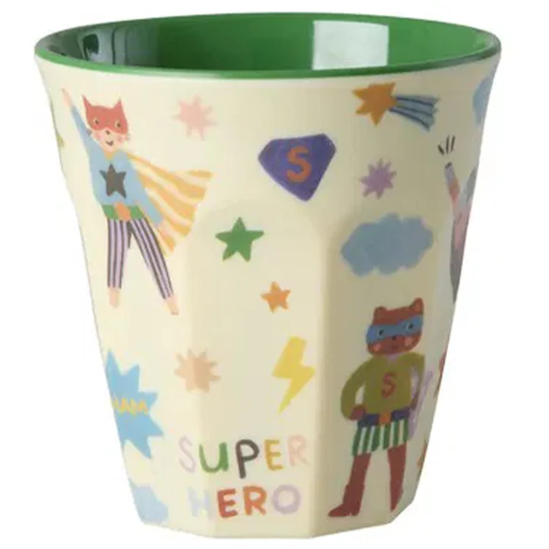 Met deze beker ‘Melamine Cup with Hero Print – Medium – Green – 250 ml’ van het Deense merk Rice wordt zelfstandig drinken een vrolijk moment. De kinderbeker heeft een crèmekleurige kleur en een speels heldenthema dat meteen aanspreekt bij kleine ontdekkers.