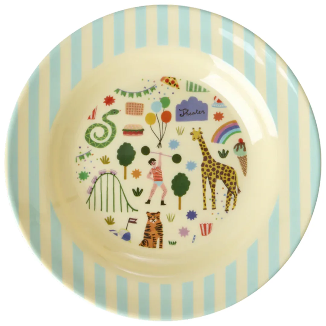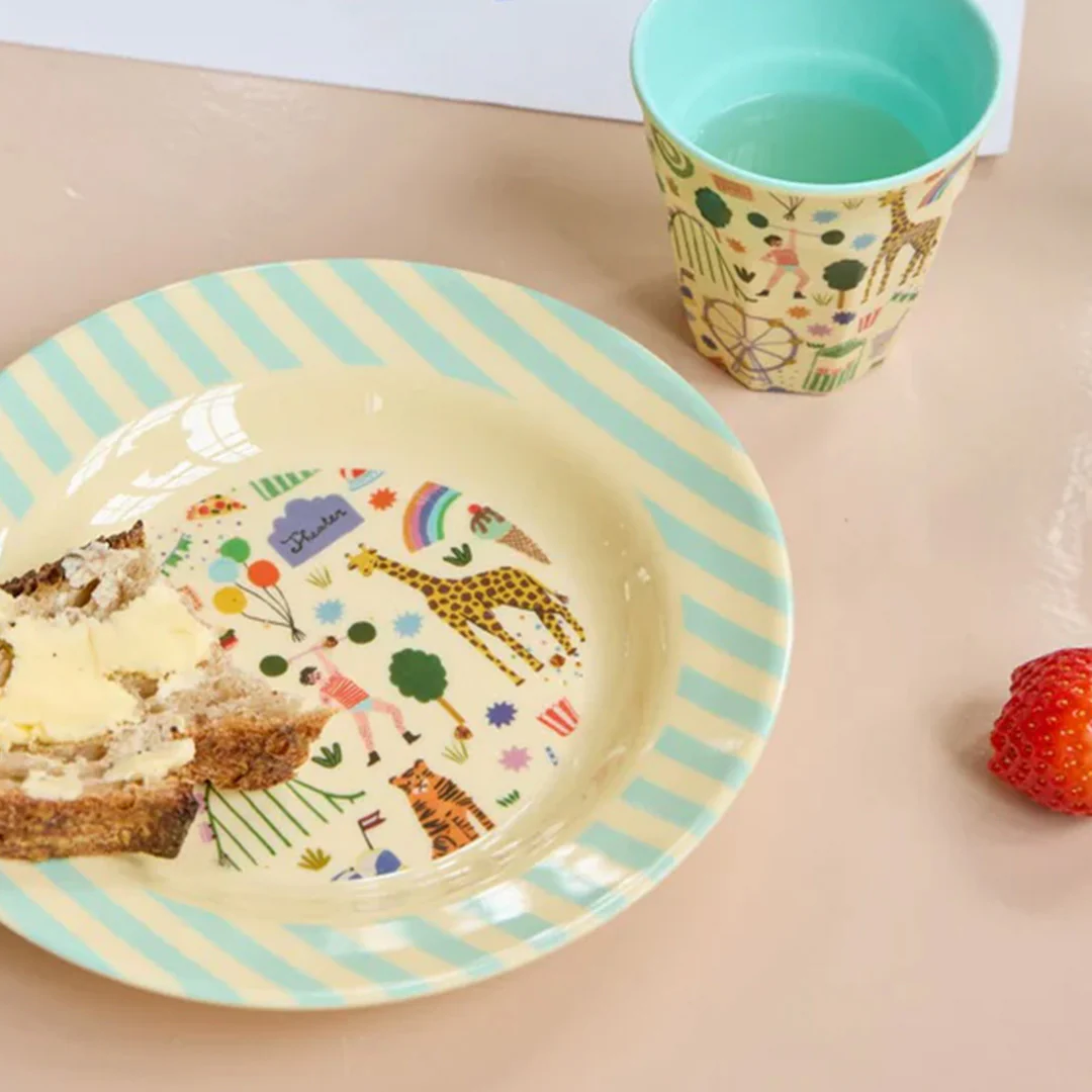 Met dit kinderschaaltje ‘Melamine Kids Bowl with Fun Fair Print – Mint – 250 ml’ van het Deense merk Rice krijgt elk hapje een vrolijke start. De zachte mintkleurige rand en de speelse illustratie maken van het schaaltje een fijne blikvanger op tafel, zowel bij ontbijt, tussendoortje als avondeten.
